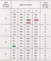 •e.g. ATG=Met, TTT=Lys (called a codon in mRNA)