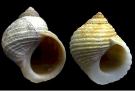 Maximum length: 18 mm. Appearance: Rough, plump shell with distinct ridges. The aperture is round with the top edge meeting the shell at right angles. The shell colour varies from green to orange. Depth: Upper shore. Feeding: Rough periwinkle is a consumer. It is a herbivore scraping algae from rocks. Environment: Rough periwinkle is found quite high on the rocky shore, in the same zone as spiral wrack and channelled wrack. Other facts: This snail survives many hours out of water by storing water in its shell and carries out gas exchange using the oxygen that dissolves from the air into this water. Classification: Rough periwinkle is a member of the invertebrate animal group mollusca. |
