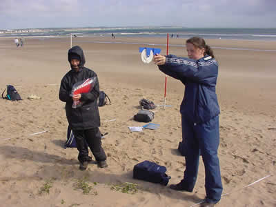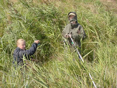 Soil samples may be taken to test its pH, water content, humus content and texture. The slope along the transect may be measured using a clinometer as in the picture. |
