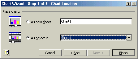 chart as an object in the current sheet and then click on the Finish