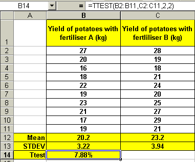 from an investigation on the effect of two fertilisers on potato growth.