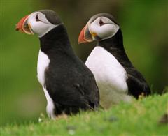 | Personally, I think that puffins have a contract with Kodak or Agfa. You get to the coast and see your first puffin. Click. Then you realise that there are lots. Click. Click. Then you realise that you can get a lot closer to them than you would expect. Click. Click. Click. Then one flies up with a beak full of sand eels and taunts you by flying off before you can get ready, until you realise that it wants to get in the burrow near your camera bag so you move away a bit, set up the tripod and wait and here it comes, really fast and into the burrow before you can click. Thats okay though because you will catch it on the way back out, the thing is, they're really sneaky as well as fast. Click. Oh well. |