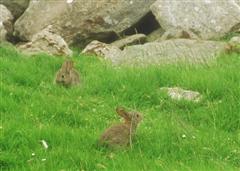 | And here is the view from the other window. Shetland has a lot of rabbits (huge understatement). There is an impressive warren above the beach so watch out for the holes. I can't help thinking that there could be a local industry waiting to be started. The view also generally contains at least one sheep, some starlings and an oystercatcher. Don't worry if you don't see an oystercatcher, you'll hear them plenty. |
